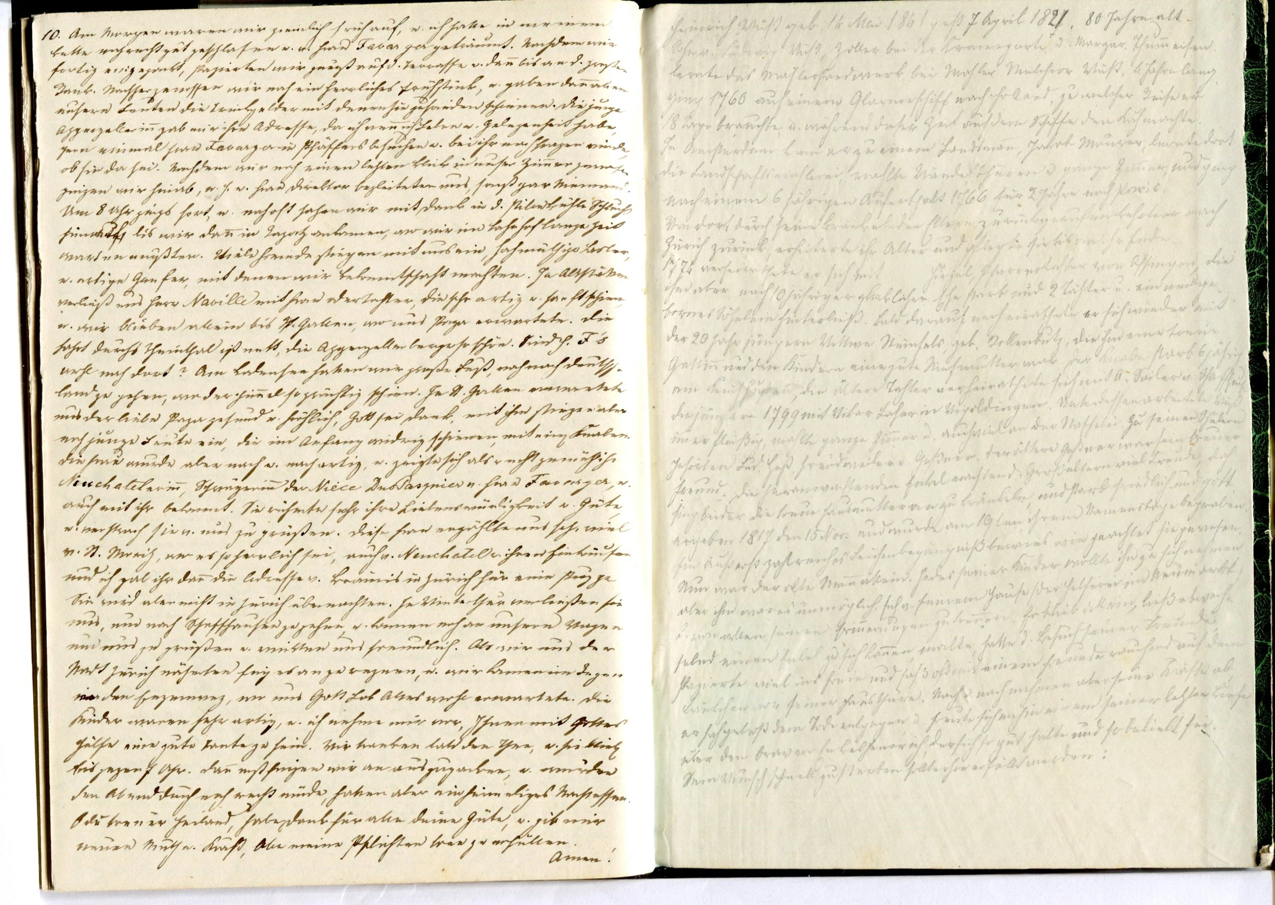 Mit dem Eintrag am 10. August 1859 füllst Du die letzte Seite Deines 7. Tagebuches, dass Dich ein Jahr und neun Monate begleitete. Auf den Umschlag schreibst Du mit Bleistift noch die Geschichte des Malers Heinrich Wüst (1741-1821), zu dessen Nachkommen ihr möglicherweise eine Beziehung gepflegt habt. Vielleicht gab es im Kronenthor oder im Engenweg sogar Bilder oder Wandmalereien von ihm.