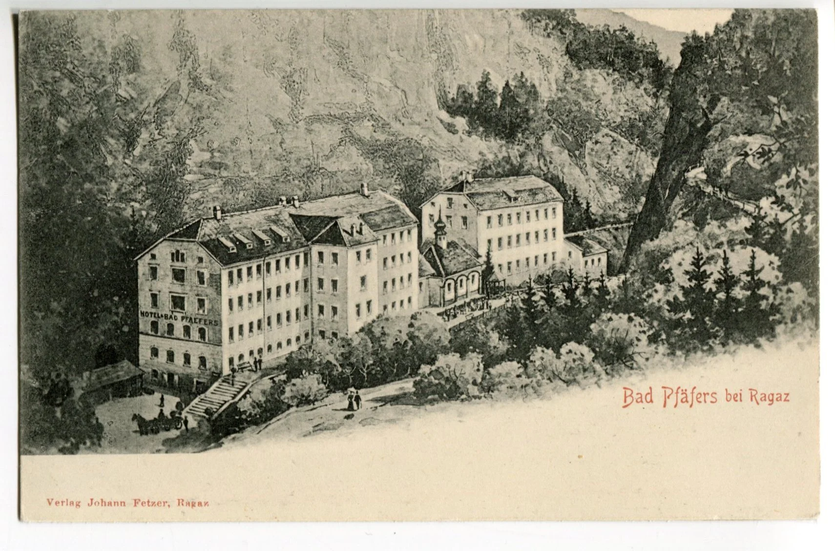 Diese Postkarte zeigt Bad Pfäfers ungefähr zu Zeit, als Du dort warst. Die Terrasse, die Du schon erwähnt hast und noch weitere male erwähnen wirst, ist hier der Kapelle vorgelagert sichtbar.